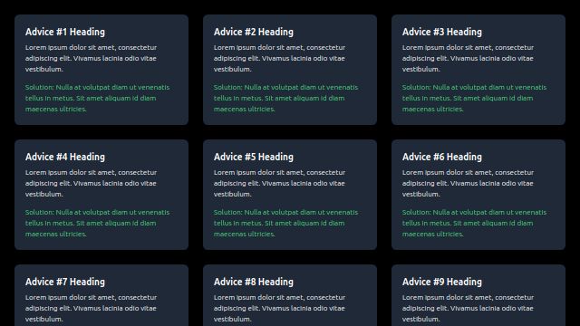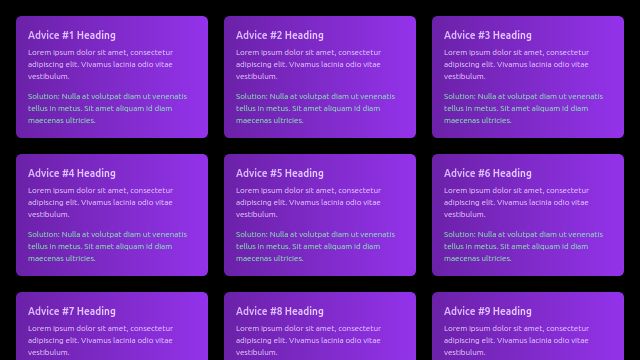 I have more text in the solution and less in description. Make only two advices in one raw.